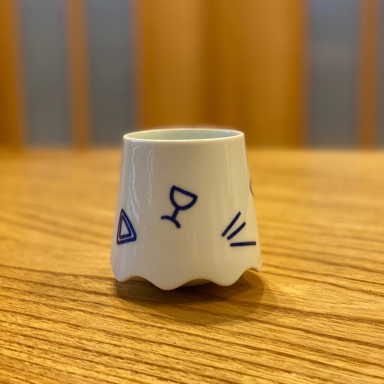 クルクル回る「不安定なのに倒れない」デザインのカップに、やまねこオリーブのロゴマークを分解して散りばめました。