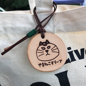 牛革製のタグはひとつひとつ焼印を入れ手作りしたものです。タグは「山カフェばってん」のオープン記念に作りました。なくなり次第タグ付きは終了です。